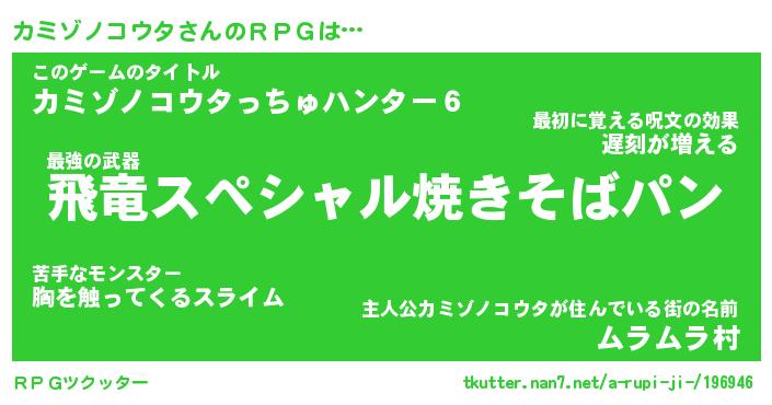 | 男性向けラノベタイトル風あだ名 | 『カミゾノコウタアートオンライン』 |