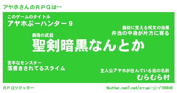 | 伝説のあだ名 | 『伝説の傭兵アヤホ』 |