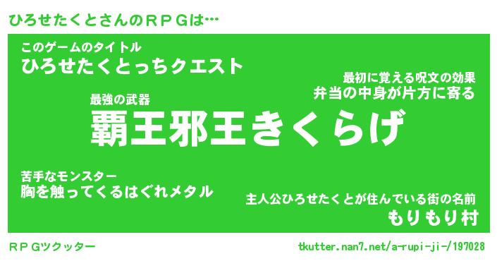 | ヒーロー風カッコイイあだ名 | 『スーパーヒロセタクト』『幻影騎士ヒロ』 |
