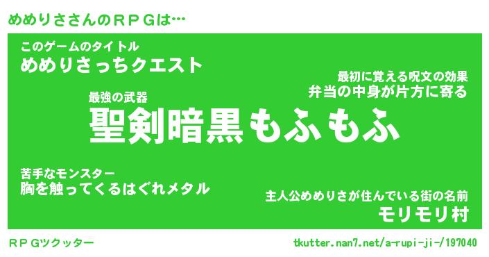 | ファンタジー風あだ名 | 『メメフェル』『エターナルメメリサー』 |