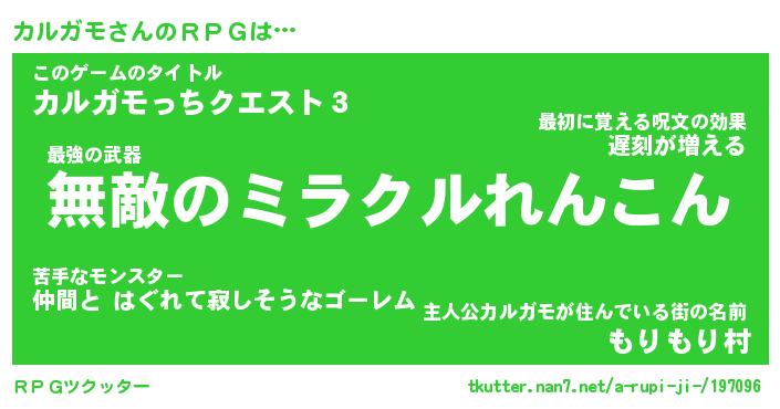 | 伝説のあだ名 | 『封印されし竜騎士カルガモ』 |