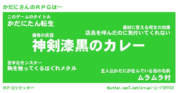 | 男性向けラノベタイトル風あだ名 | 『かだにの憂鬱』 |
