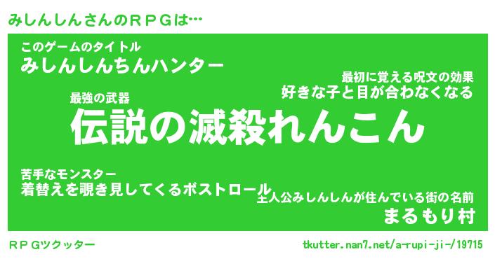 | 男性向けラノベタイトル風あだ名 | 『みしんしんの憂鬱』 |