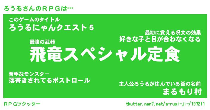 | ファンタジー風あだ名 | 『ロウフェル』『エターナルロウルー』 |