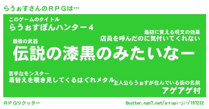 | 男性向けラノベタイトル風あだ名 | 『らうぉすの憂鬱』 |