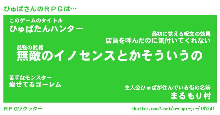 | ファンタジー風あだ名 | 『ヒュフェル』『エターナルヒュパー』 |
