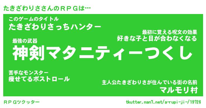 | ヒーロー風カッコイイあだ名 | 『スーパータキザワリサ』『幻影騎士タキ』 |