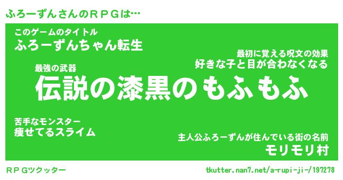 | 男性向けラノベタイトル風あだ名 | 『ふろーずんの憂鬱』 |