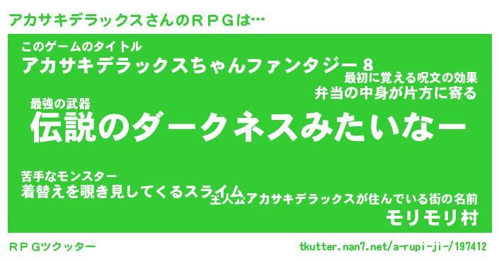 | 男性向けラノベタイトル風あだ名 | 『アカサキデラックスの憂鬱』 |