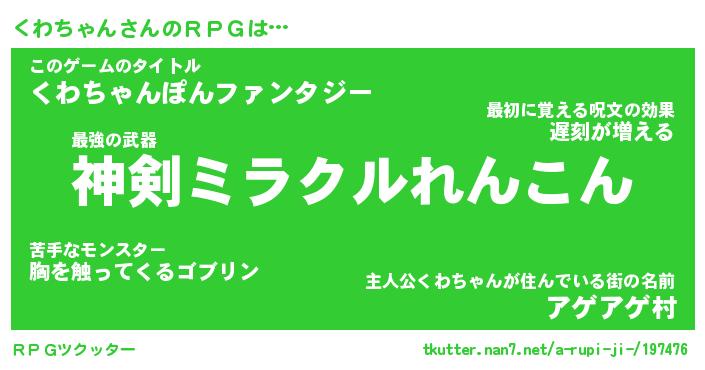 | ファンタジー風あだ名 | 『クワフェル』『エターナルクワチャンー』 |