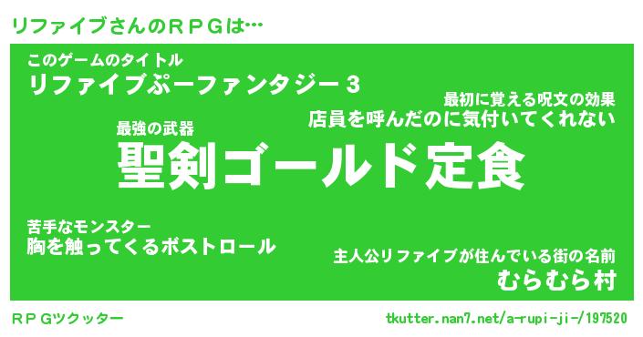 | 男性向けラノベタイトル風あだ名 | 『リファイブの憂鬱』 |