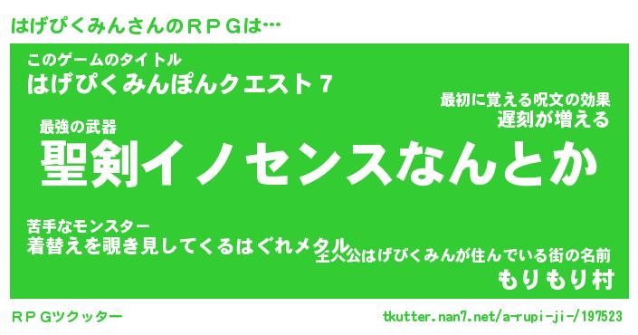 | 伝説のあだ名 | 『伝説のスナイパーはげぴくみん』 |