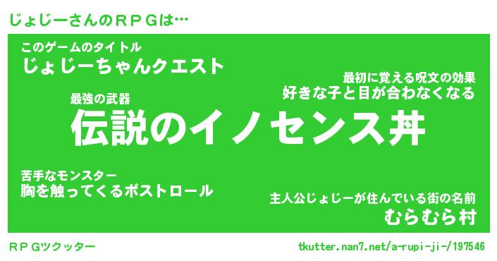 | 女子向けラノベタイトル風あだ名 | 『じょじー姫と円卓の騎士』 |