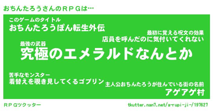 | 男性向けラノベタイトル風あだ名 | 『おちんたろうの憂鬱』 |