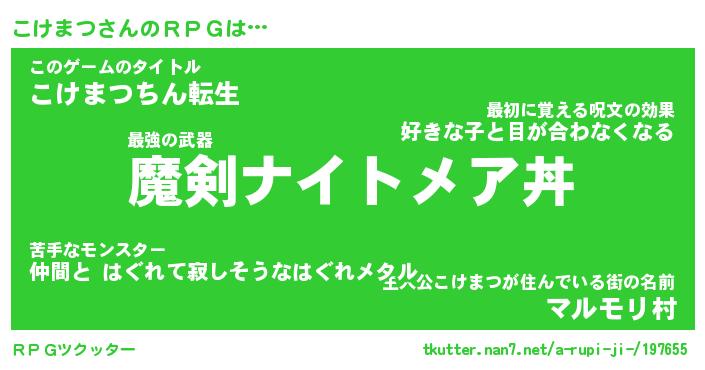 | ファンタジー風あだ名 | 『コケフェル』『エターナルコケマツー』 |