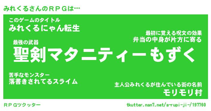 | ヘコむあだ名 | 『みれっふぃ~』『牛乳』 |