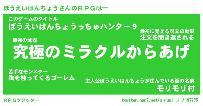 | 意味不明あだ名 | 『ペロリンぼうえいはんちょう』 |