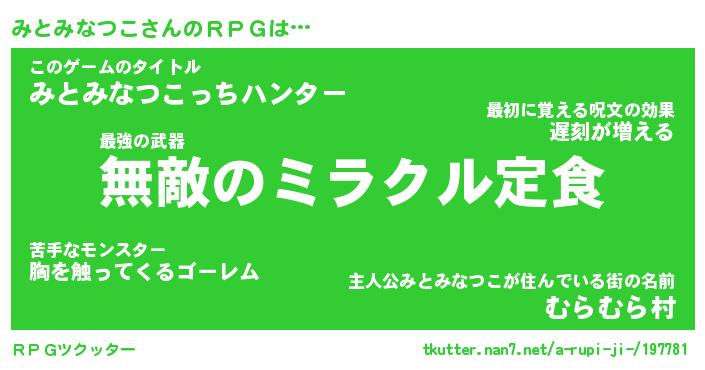 | ヒーロー風カッコイイあだ名 | 『スーパーミトミナツコ』『幻影騎士ミト』 |