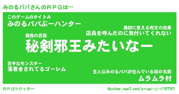 | ヒーロー風カッコイイあだ名 | 『スーパーミノルパパ』『幻影騎士ミノ』 |