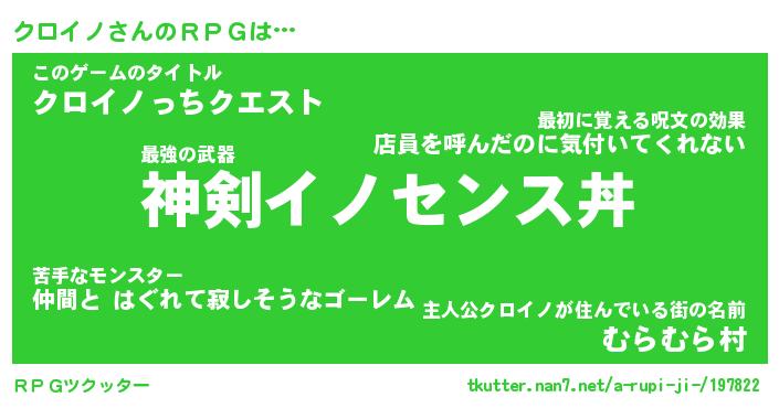 | ファンタジー風あだ名 | 『クロフェル』『エターナルクロイノー』 |