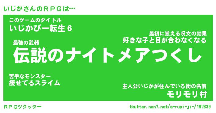 | ファンタジー風あだ名 | 『イジフェル』『エターナルイジカー』 |