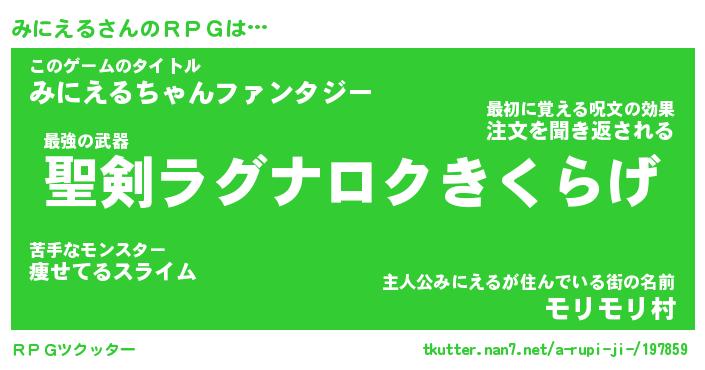 | 伝説のあだ名 | 『伝説の竜騎士みにえる』 |
