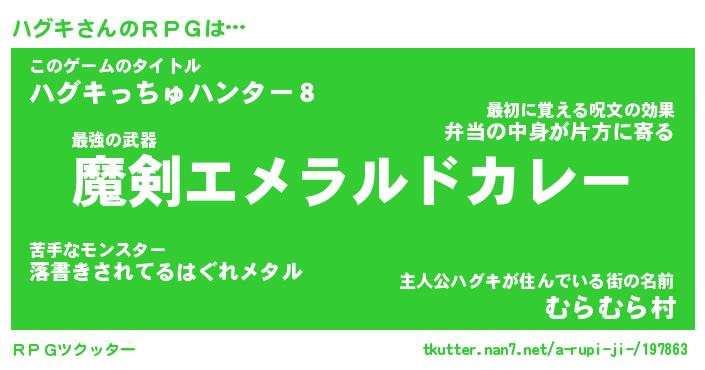 | 伝説のあだ名 | 『伝説のスナイパーハグキ』 |