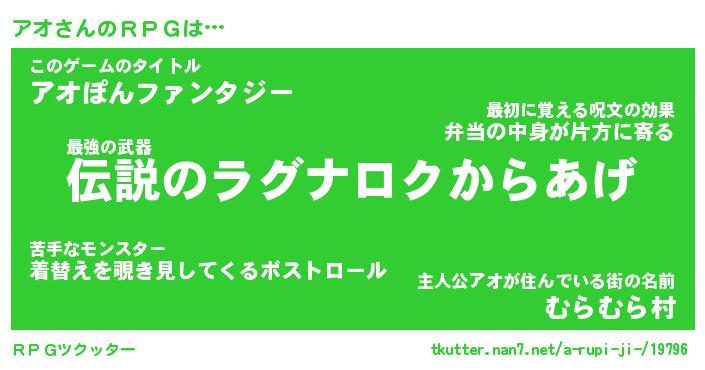 | ファンタジー風あだ名 | 『アオフェル』『エターナルアオー』 |