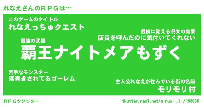 | 主人公の名前は?『れなんちゃん』 |