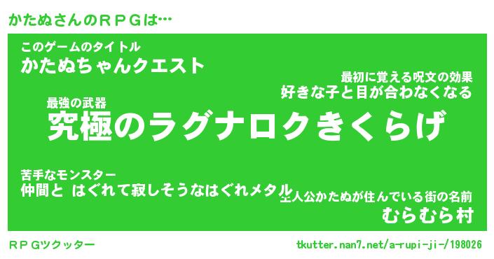 | 男性向けラノベタイトル風あだ名 | 『かたぬの憂鬱』 |