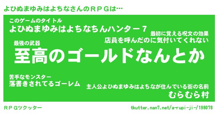 | 料理風あだ名 | 『節約★よひぬまゆみはよちなと油揚げの玉子丼』 |