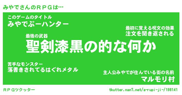 | 男性向けラノベタイトル風あだ名 | 『みやでの憂鬱』 |