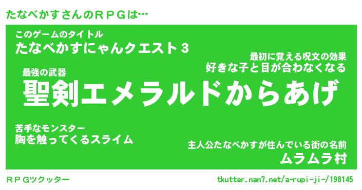 | ファンタジー風あだ名 | 『タナフェル』『エターナルタナベカスー』 |