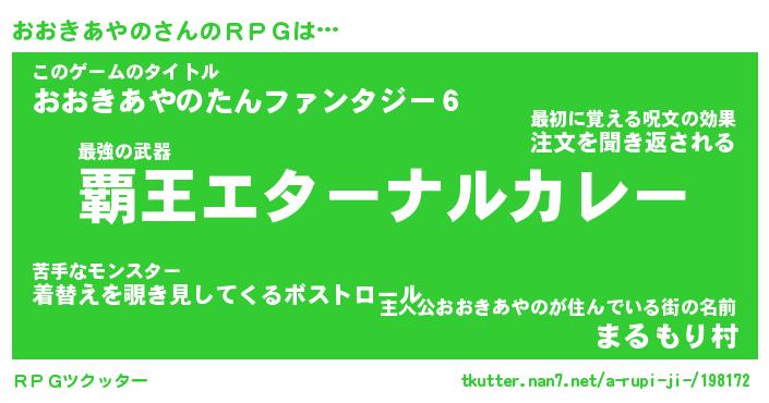 | 伝説のあだ名 | 『封印されし傭兵おおきあやの』 |