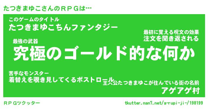| 伝説のあだ名 | 『不死鳥のスナイパーたつきまゆこ』 |