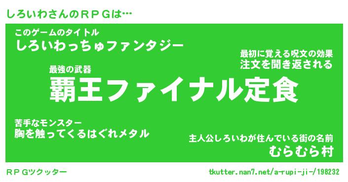 | 男性向けラノベタイトル風あだ名 | 『シロイワアートオンライン』 |