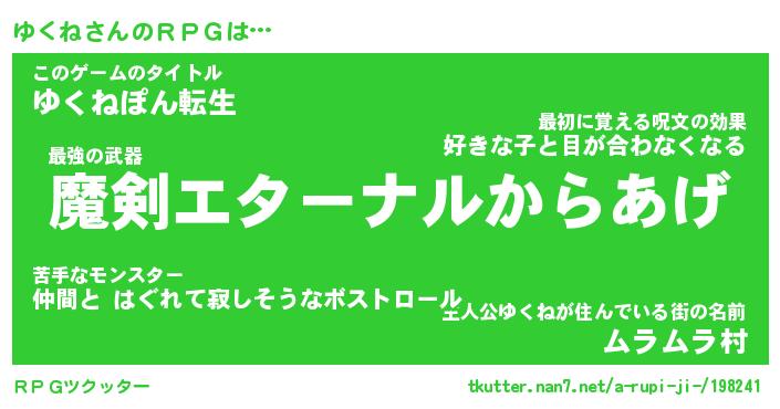 | 男性向けラノベタイトル風あだ名 | 『ゆくねの憂鬱』 |