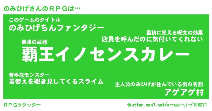 | 胡散臭い通販商品みたいなあだ名 | 『億万長者になれる霊験あらたかなお札…その名も「のみひげ」』 |