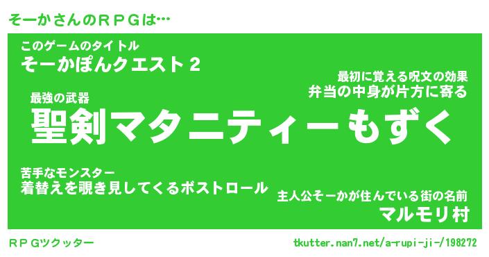 | 胡散臭い通販商品みたいなあだ名 | 『必ず成功する霊験あらたかなお札…その名も「そーか」』 |