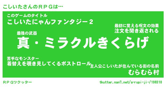 | ファンタジー風あだ名 | 『コシフェル』『エターナルコシイター』 |