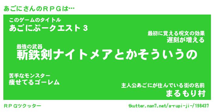| ファンタジー風あだ名 | 『アゴフェル』『エターナルアゴニー』 |