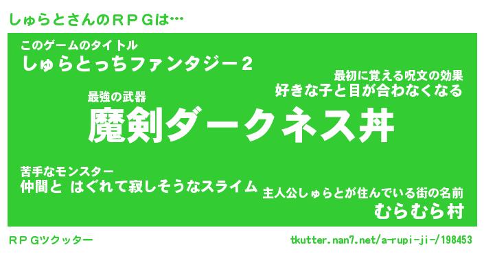 | ファンタジー風あだ名 | 『シュフェル』『エターナルシュラトー』 |