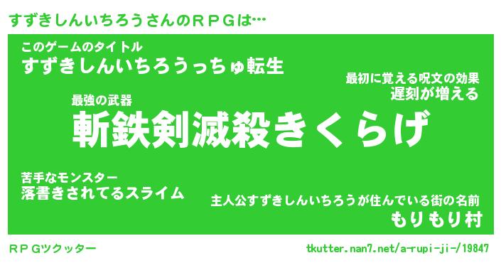 | 男性向けラノベタイトル風あだ名 | 『すずきしんいちろうの憂鬱』 |