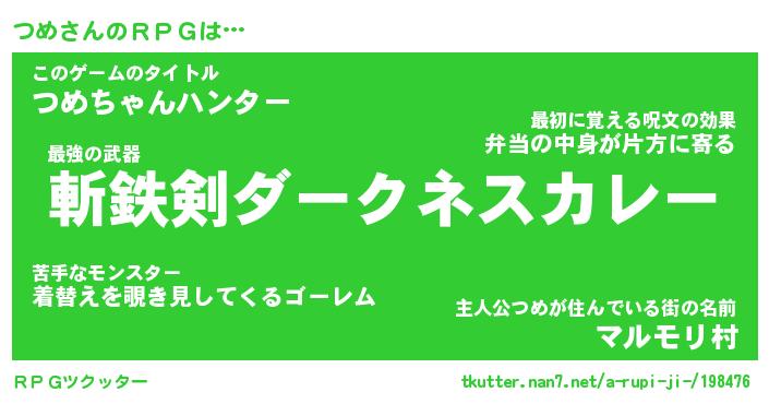 | ヒーロー風カッコイイあだ名 | 『スーパーツメ』『ウルトラつめマン』 |