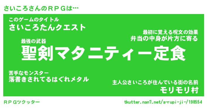 | 男性向けラノベタイトル風あだ名 | 『さいころの憂鬱』 |