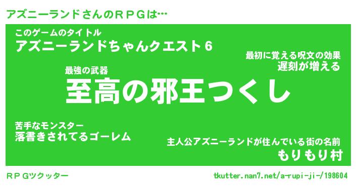 | 男性向けラノベタイトル風あだ名 | 『アズニーランドアートオンライン』 |