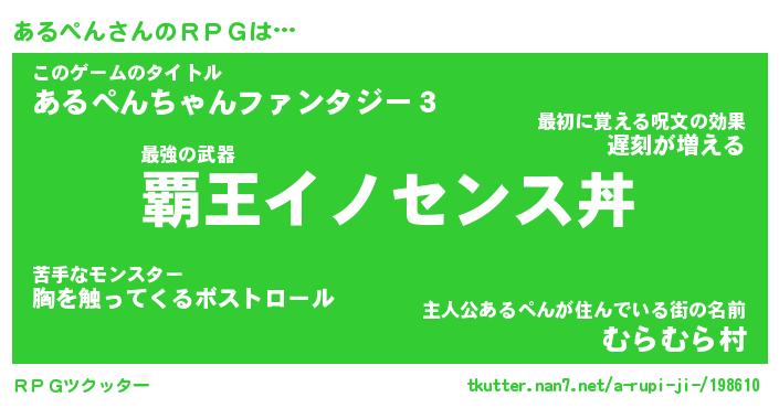 | 伝説のあだ名 | 『封印されしスナイパーあるぺん』 |