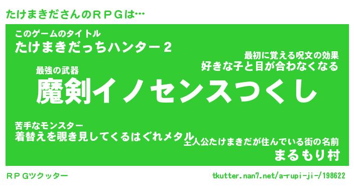 | ヒーロー風カッコイイあだ名 | 『スーパータケマキダ』『幻影騎士タケ』 |
