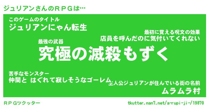 | ファンタジー風あだ名 | 『ジュフェル』『エターナルジュリアンー』 |