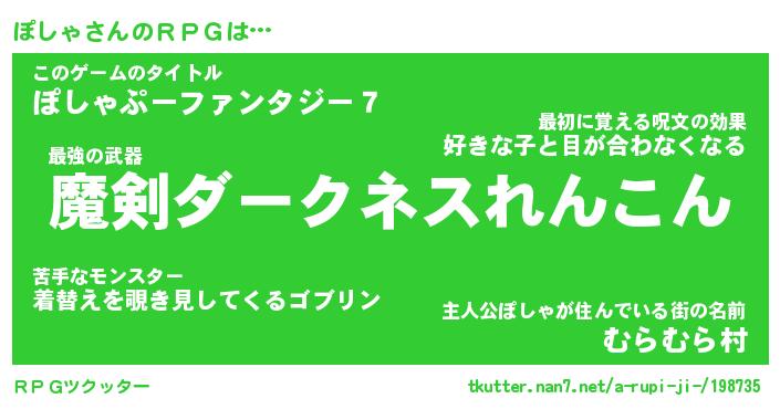 | 男性向けラノベタイトル風あだ名 | 『ぽしゃの憂鬱』 |